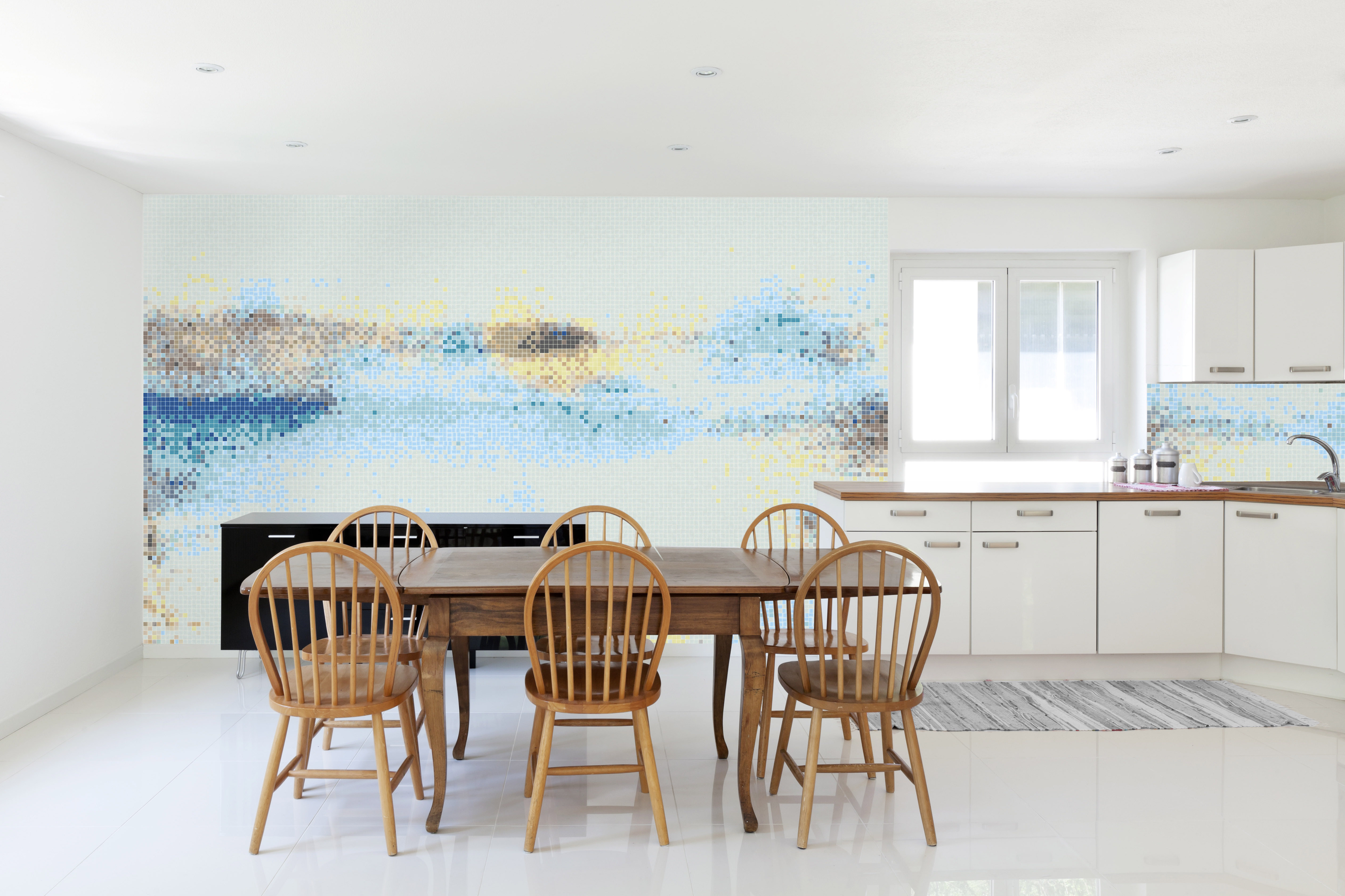 Jeszcze inna jest kolekcja „Refleksy” projektu Aleksandry Krzanowskiej. Prace z tego zbioru przypominają dzieła neoimpresjonistów — kompozycje drobnych, gęsto rozmieszczonych różnobarwnych punktów naniesionych na płótno czubkiem pędzla. Poszczególne wzory zmieniają się niczym polski krajobraz w zależności od pór roku. Ta subtelna zabawa barwą, światłem i nastrojem tworzy z mozaiki pejzaż, który może wypełnić ścianę w łazience, kuchni lub w salonie.