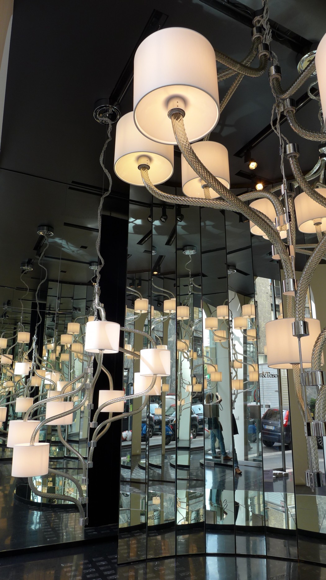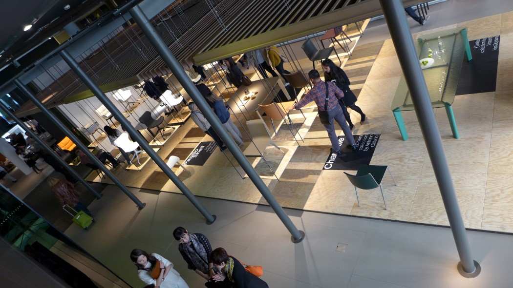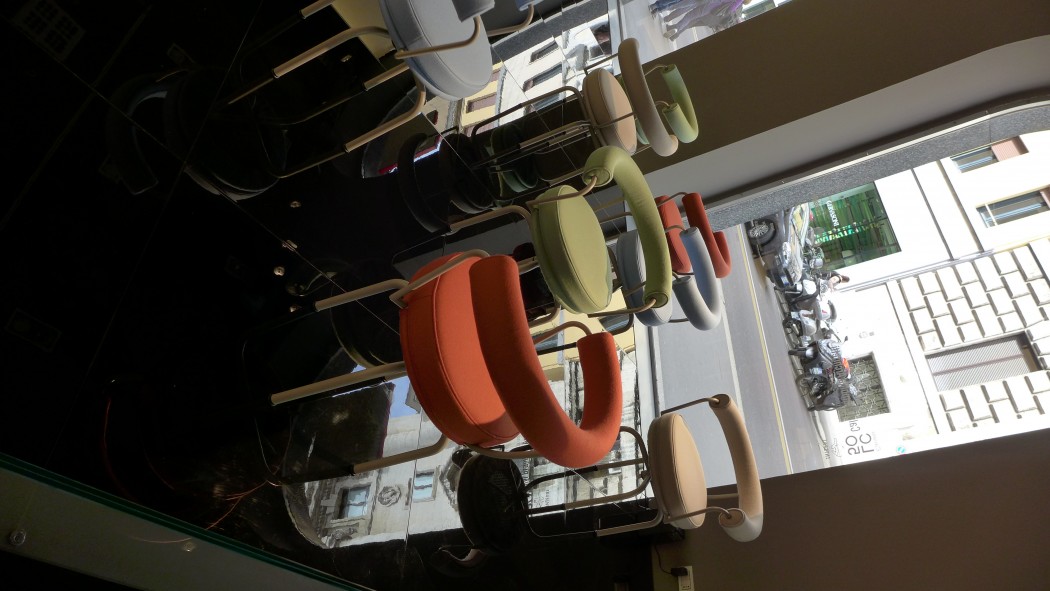 W zeszłym roku dołączyłam nieco później do grupy i ominęło mnie zwiedzanie centrum Mediolanu. Teraz już nie mogłam tego opuścić. Niestety okazało się, że jesteśmy trochę za wcześnie, ponieważ Włosi śpią jeszcze o 10 rano i wszelkie muzea czy wystawy były pozamykane. Po szybkiej kawie i ciepłej włoskiej kanapce ruszyłam z nowo poznaną koleżanką (pozdrowienia dla Oli) zwiedzać salony wnętrzarskie w centrum miasta. Miałam jeden główny cel – odwiedzić salon B&B Italia przy Via Durini, do którego dostałam specjalne zaproszenie. 2 razy nie trzeba było powtarzać – ulubione kolekcje mebli, ulubiona projektantka! Nie zawiodłam się. Klasa i szyk! Na tej samej ulicy znalazłyśmy salony takich firm jak Poltrona Frau, Barovier&Toso, Cassina, Meritalia. W czasie, w którym odbywają się targi całe miasto zamienia się w jedno wielkie centrum wystawiennicze. Każdy salon, sklep czy punkt, który bierze udział w iSaloni oznaczony jest specjalnym roll-upem, zapraszającym gości do odwiedzenia. Całe szczęście również, że w mieście nie ma problemu z dostaniem darmowych przewodników i map, dzięki czemu możemy mieć pewność, że nic nie umknie naszej uwadze… A tak naprawdę, kto był to wie, że nie sposób zwiedzić wszystkiego. Ani w centrum ani w Fiera Milano. Po prostu się nie da i należy się z tym pogodzić.