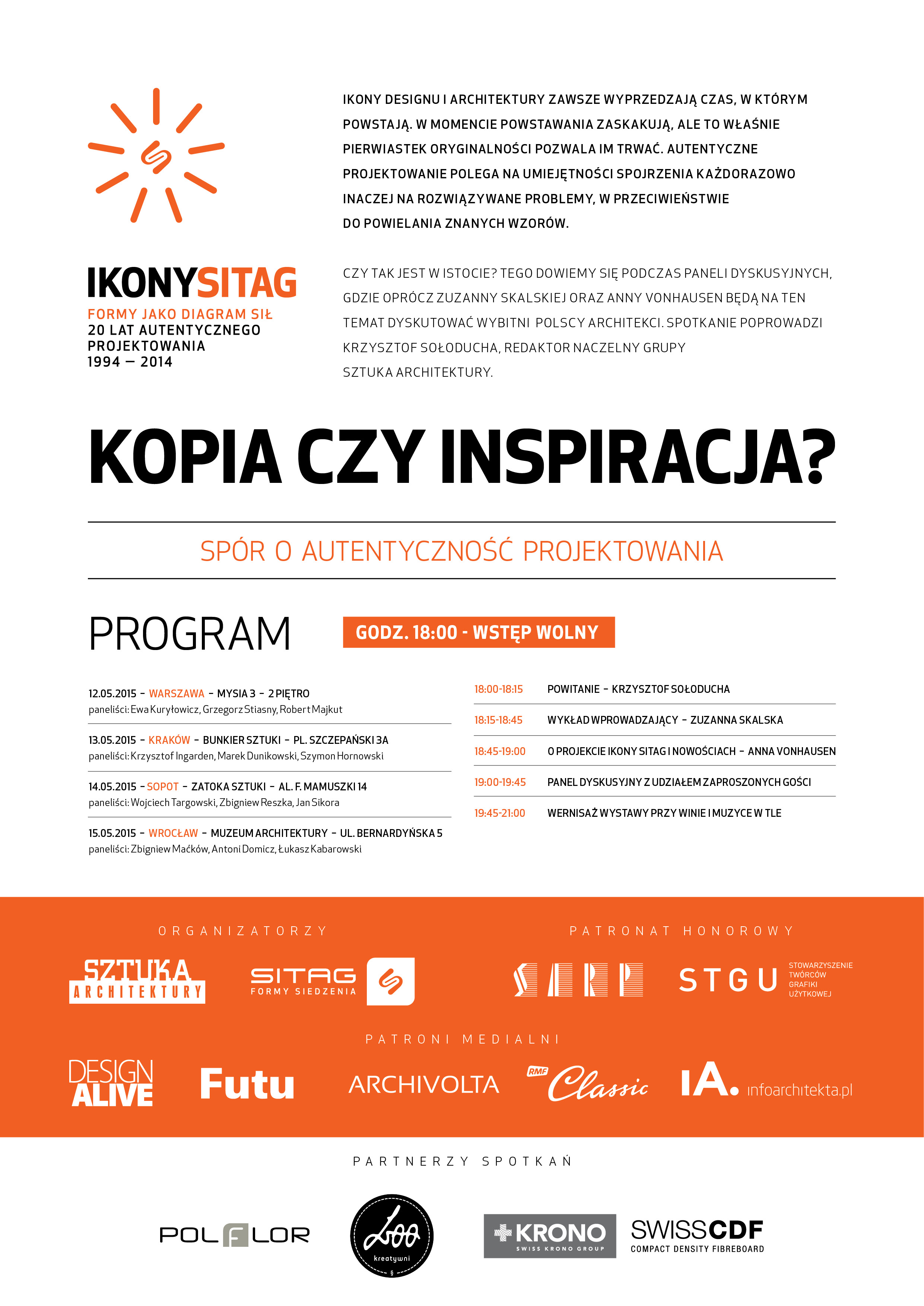 Dyskusja ta zapewne nie będzie miała końca, bo czy w świecie masowego mieszania się informacji można jeszcze wskazać, do kogo należy pomysł? Czy zagraża to oryginalności, która przestaje być wyznacznikiem jakości w architekturze i designie? Na szczęście nie tylko ja się nad tym zastanawiam. Do debaty na te tematy zaprasza również Grupa Sztuka Architektury oraz firma SITAG Formy Siedzenia, które to zainicjowały kampanię “Ikony SITAG”.