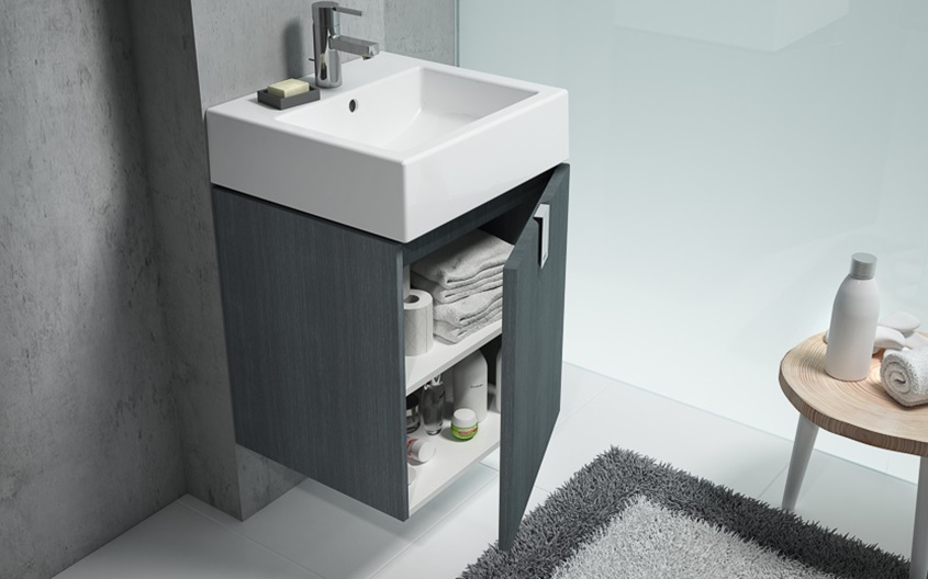 Jak utrzymać porządek w takim miejscu? W momencie gdy czasy szarego mydła i jednego dostępnego na rynku kremu minęły bezpowrotnie nie jest to proste zadanie. I albo pozostaniemy minimalistami – w co raczej nie wierzę (mnie mimo dobrych chęci to się nigdy nie uda, zresztą w moim wieku potrzeba już wieeeelu kremów) – albo możemy odpowiednio zorganizować miejsce dla naszych łazienkowych przyborów. Obstawione kosmetykami ranty wanny czy umywalki dalej nie będą jednak wyglądały schludnie, a duża ilość przedmiotów zaburzy harmonię naszego wnętrza. Wszak nasze łazienki często nie pełnią już tylko roli miejsca, w którym dbamy o higienę – to także strefa naszego relaksu, w której odpoczywamy po długim, pracowitym dniu.