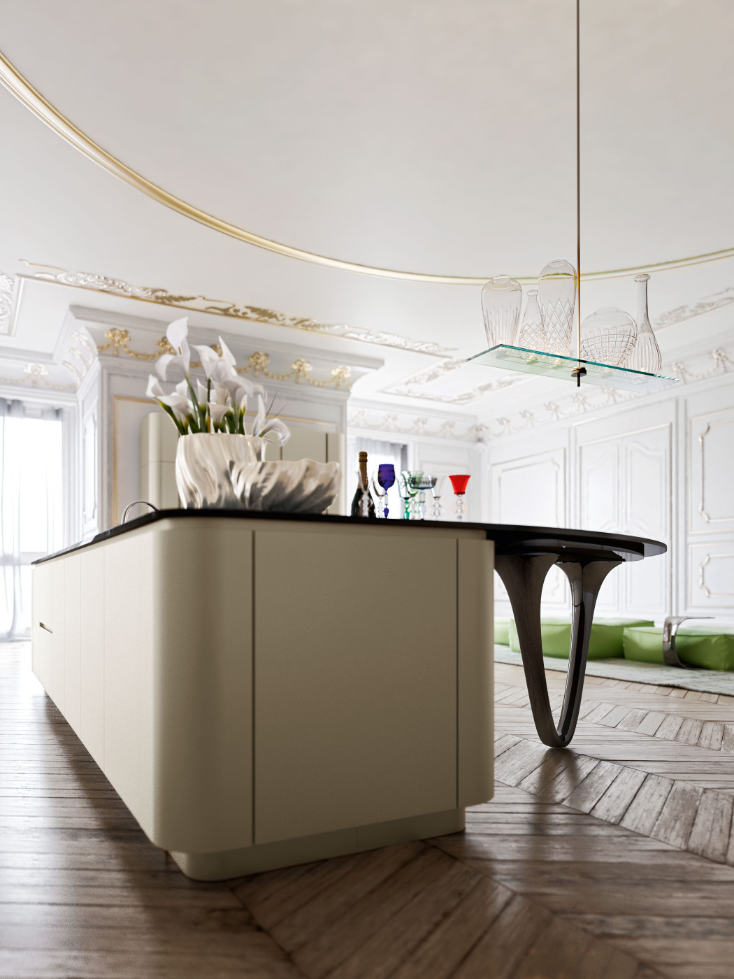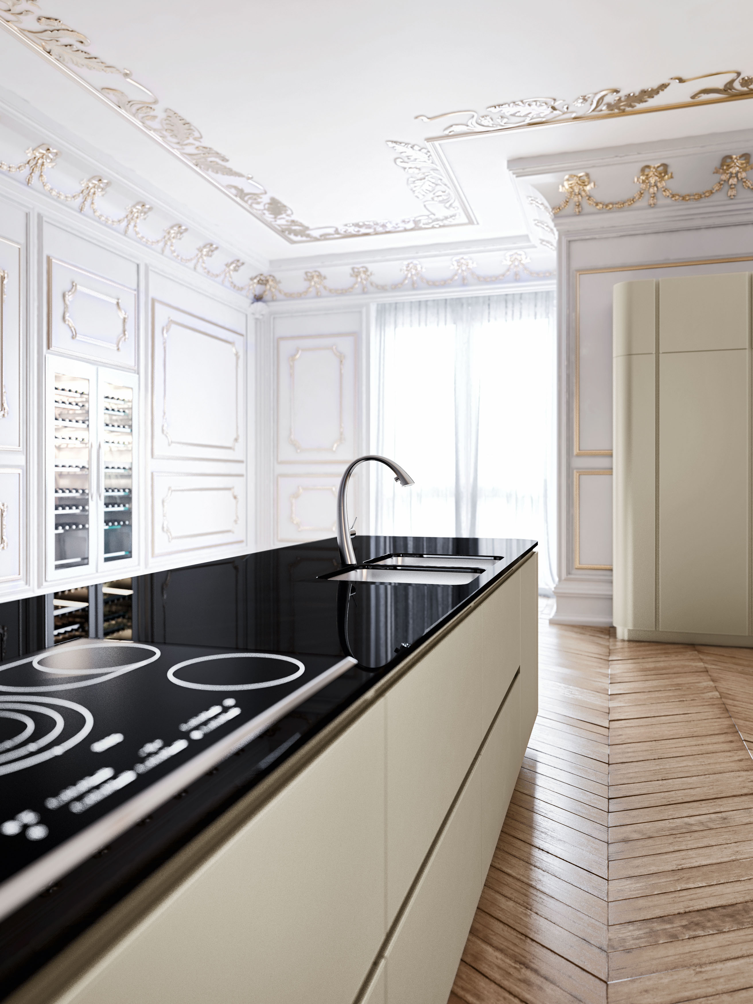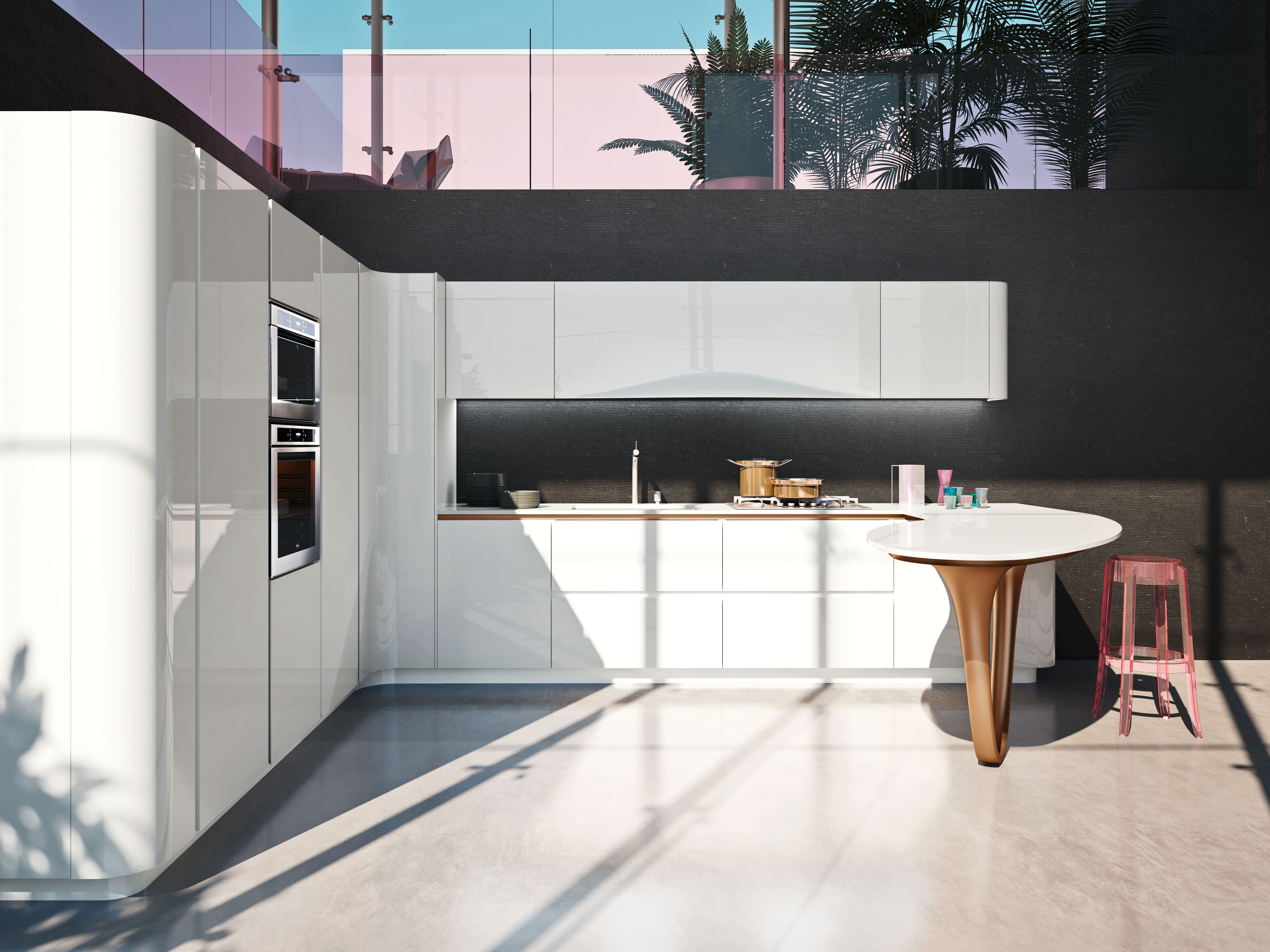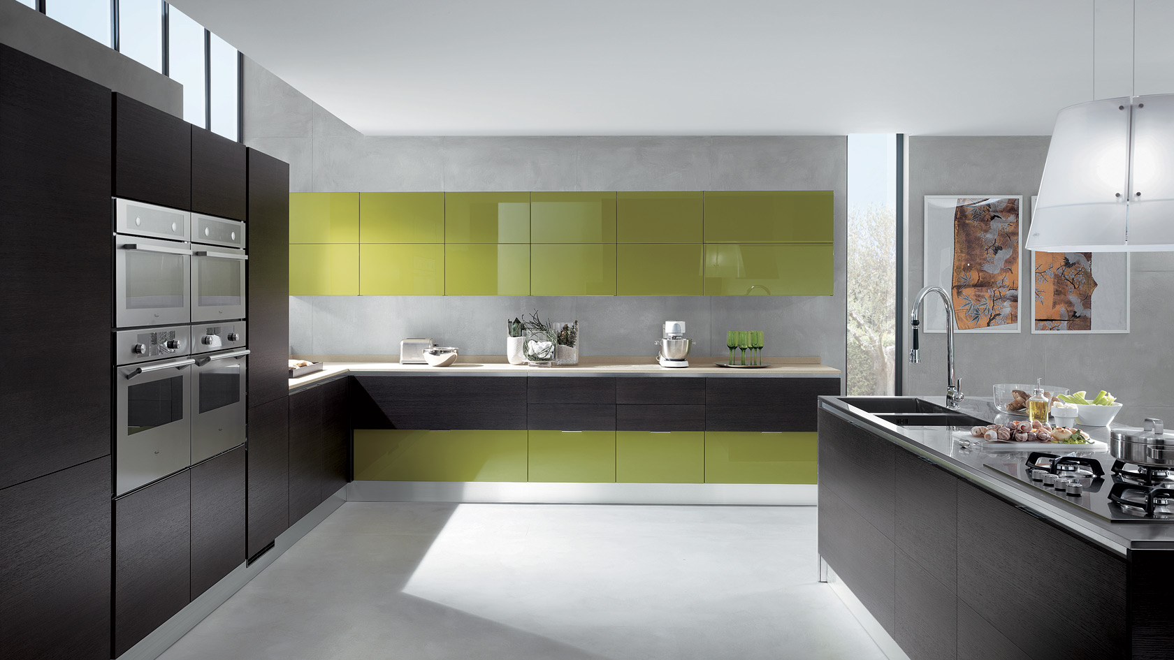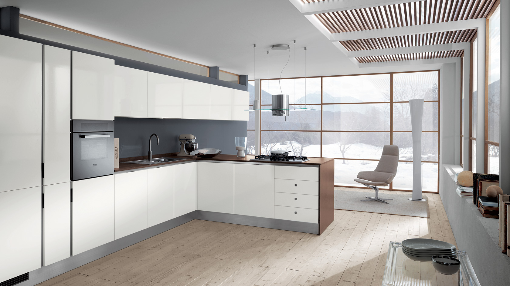 Frame. Współczesna klasyka. Kuchnia inspirowana tradycyjnymi wnętrzami domów, umiejscowiona w industrialnej przestrzeni. Zaprojektowana przez Massimo Iosa Ghini. Dyskrecja i elegancja, ciepło i osobowość – to hasła, którymi kierował się projektant podczas tworzenia tej kuchni.