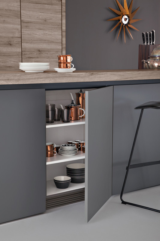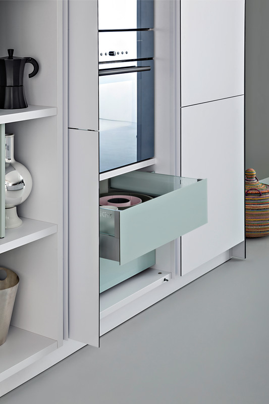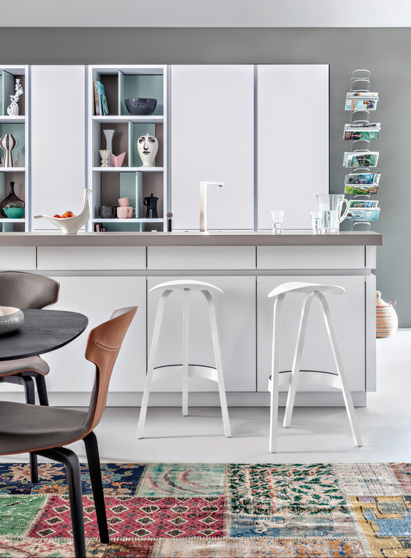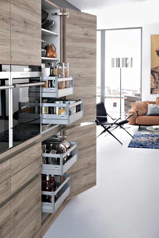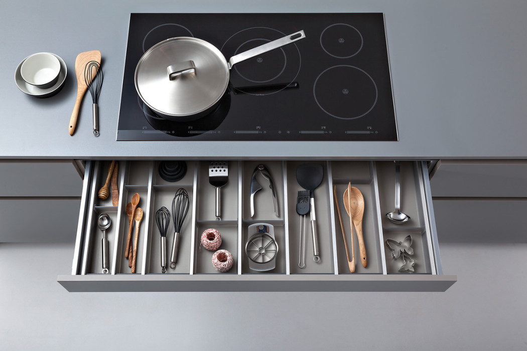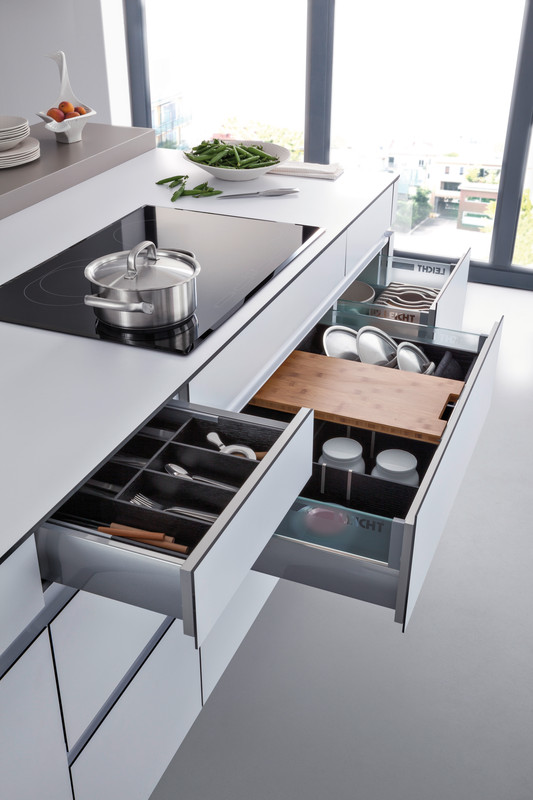 Leicht podzielił swoje projekty na trzy kategorie: Modern Style, Traditional Style oraz Handle-less kitchens, a więc kuchnie o gładkich frontach bez widocznych uchwytów, czy mocowań. Wszystkie projekty Leich są jednak proste, składają się z czystych linii, prostopadłościanów i boxów w przyjemnej, delikatnej kolorystyce.